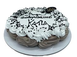 decorato con panna montata e merighe al cacao